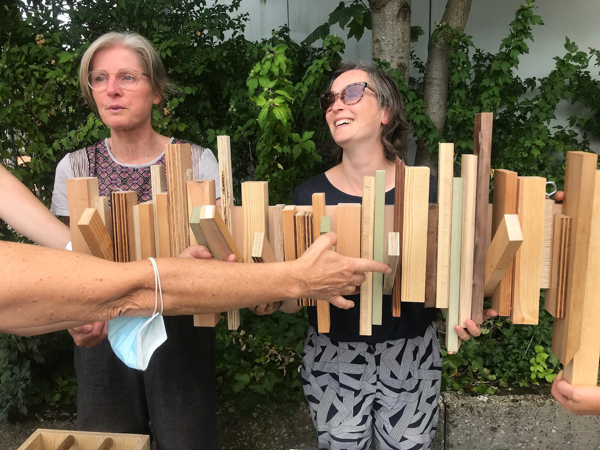 Tijdens de workshop loop je altijd wel tegen wat uitdagingen of onverwachte situaties aan, samen naar een oplossing zoeken werkt verbindend en je komt op nieuwe ideeën. Constructief timmeren noemen wij dat. Eén ding is zeker: in alle workshops ga je creatief aan de slag met circulair materiaal.